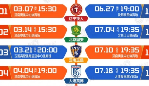 16.第16轮6月27日(六)19:00辽宁铁人vs山东泰山(客)